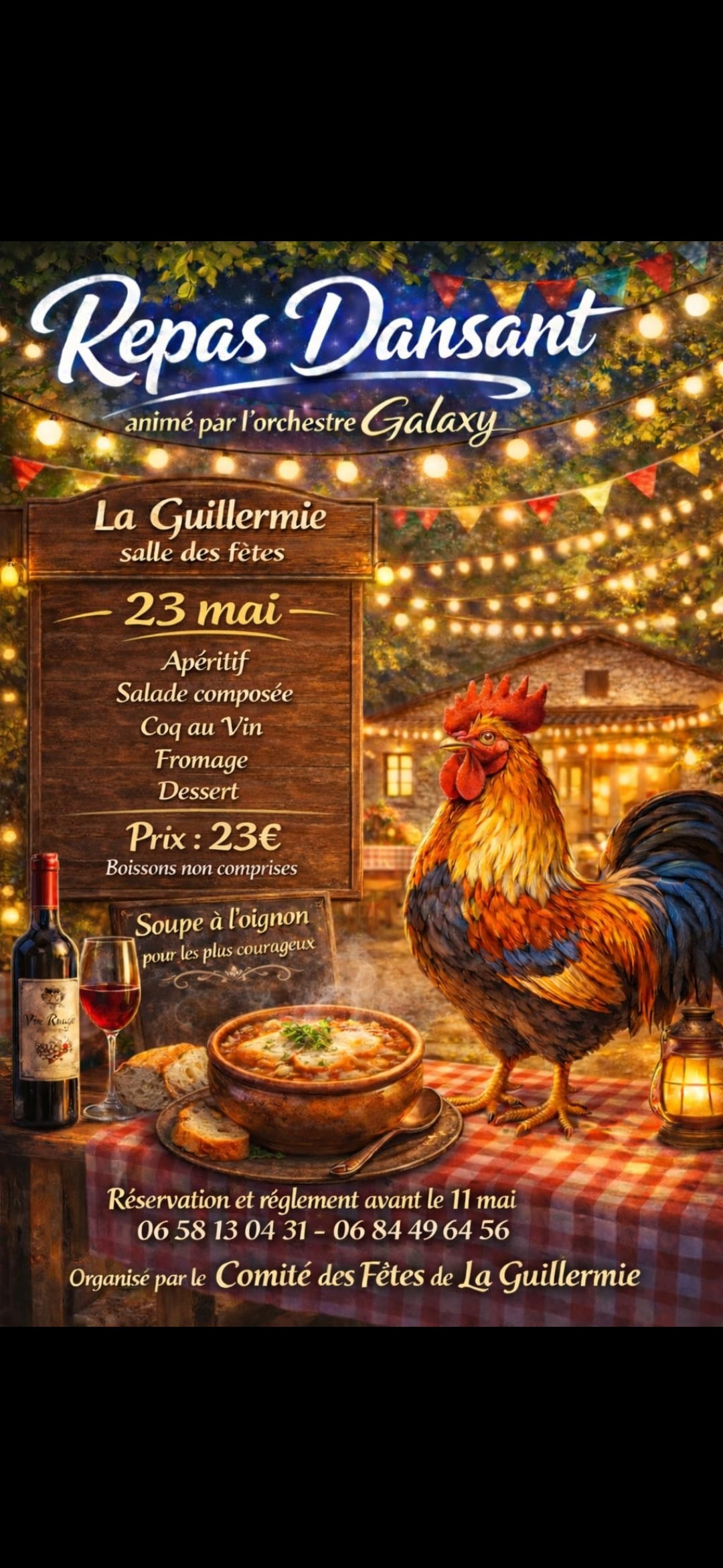 Le comité des fetes est heureux de vous présenter son repas, sur le thème ginguette et déguster son délicieux coq-au-vin !